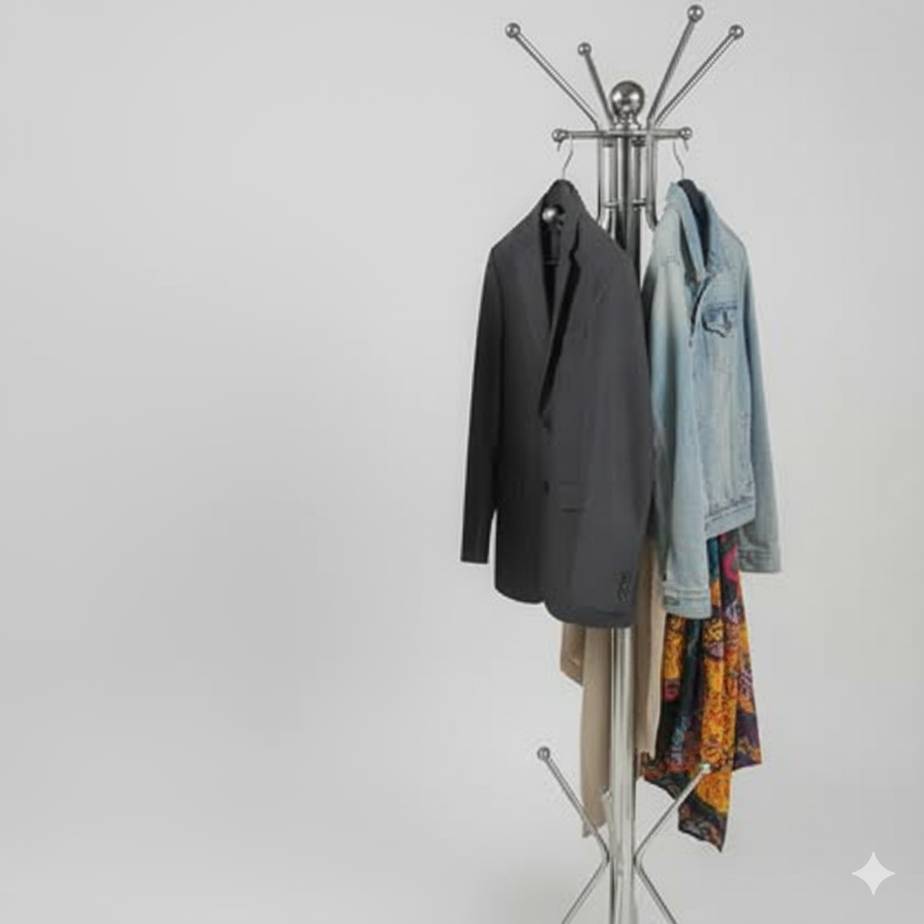 - এই মজবুত SS কোট স্ট্যান্ডটি আপনার সমস্ত পোশাক (কোট, জ্যাকেট, স্কার্ফ) এক জায়গায় গুছিয়ে রাখার জন্য আদর্শ। এর স্টাইলিশ ডিজাইন কম জায়গায় বেশি জিনিস রাখার সুবিধা দেয়, যা যেকোনো আধুনিক ঘর বা অফিসের জন্য উপযুক্ত। জিনিসপত্র হাতের নাগালে রাখুন এবং ঘরের সৌন্দর্য বাড়ান। সীমিত সময়ের জন্য বিশেষ ছাড় চলছে!